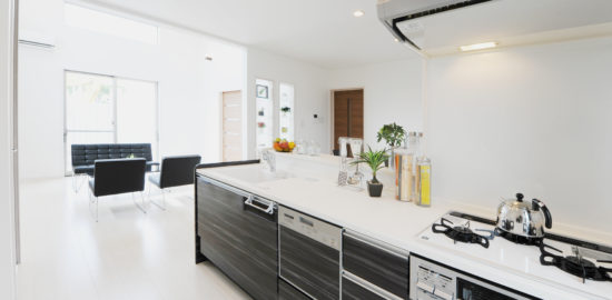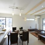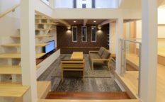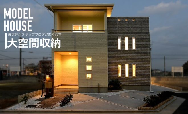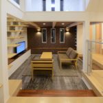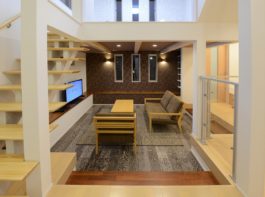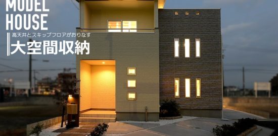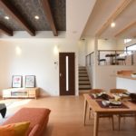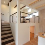 高天井とヌード階段から射しこむ光が明るいモデルハウス